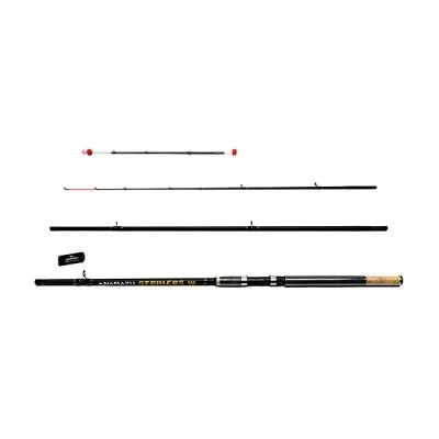 Удилище фидерное композитное NAMAZU STRIKERS, 3,6 м, тест до 150 гр.STRIKERS композитное фидерное удилище. Колена соединяются "комель в хлыст". Кольца SiC, установленные на ножках с тремя точками крепления, есть возможность применения плетёных шнуров. В комплекте 3 стеклопластиковых хлыстика различной жесткости. Классический катушкодержатель с нижней гайкой, рукоятка прямая, комбинированная (пробка + EVA). Поставляется в нейлоновом чехле.