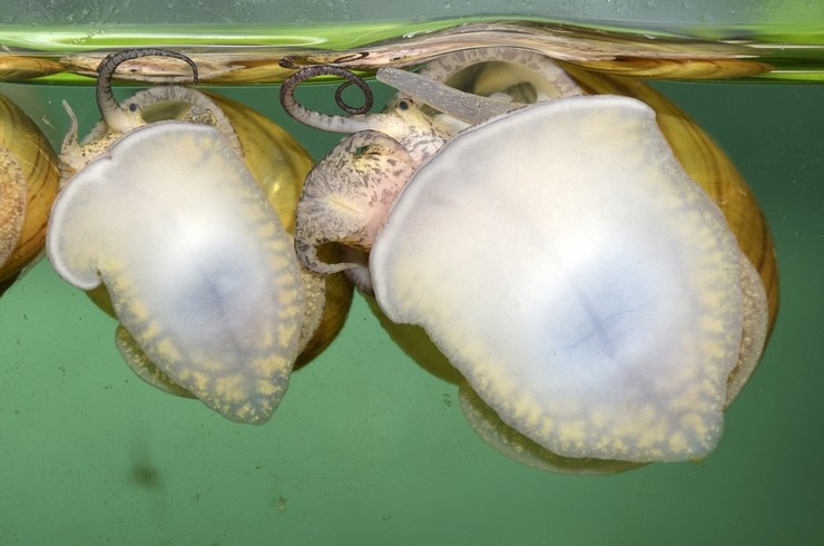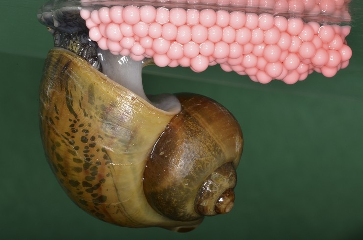 В отличие от большинства других улиток, ампулярии являются раздельнополыми, поэтому для размножения понадобятся самец и самка. К сожалению, половой диморфизм у моллюсков не выражен, поэтому самый верным способом будет приобрести в аквариум не менее 6 особей.