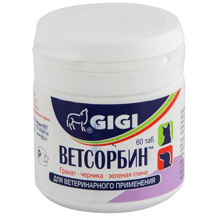 Ветсорбин GIGI таблетки для собак и кошек при отравлениях и неинфекционной диарее, 60таб
