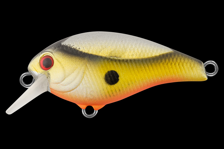 Особенности дизайна: FURI SR 40F – компактный воблер с характерным для кренков широким телом и узкой хвостовой частью. Бока приманки имеют две рельефные фактуры поверхности, имитирующие чешуйки, разделенные боковой линией. Верхняя часть выполнена в виде ромбовидных насечек, нижняя в виде косых насечек. Головная часть воблера рельефно изображает жаберные крышки рыбки, а вклеенные 3D глаза завершают реалистичный дизайн приманки.