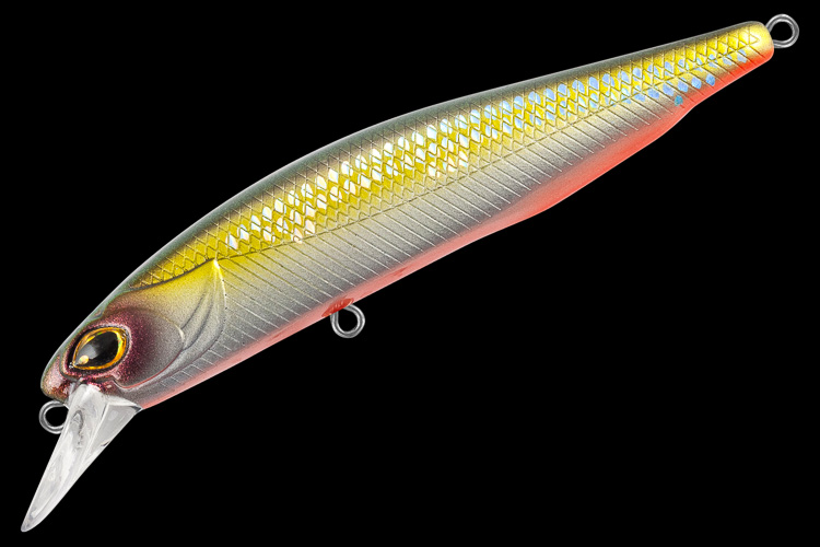 Особенности дизайна: В оформлении поверхности воблера использованы два варианта фактуры: верхняя часть боков выполнена насечками в виде чешуек, а ниже боковой линии – в виде косых насечек. Спинка и пузо воблера гладкие. Головная часть – имитация головы настоящей рыбки, с жаберными крышками и вытянутыми 3D глазами. Общий дизайн приманки весьма реалистичный. Воблер оснащен двумя тройниками OWNER и силовыми заводными кольцами. Имеется система баланса и магнитная система дальнего заброса МСДЗ). Качественное лако-красочное покрытие.