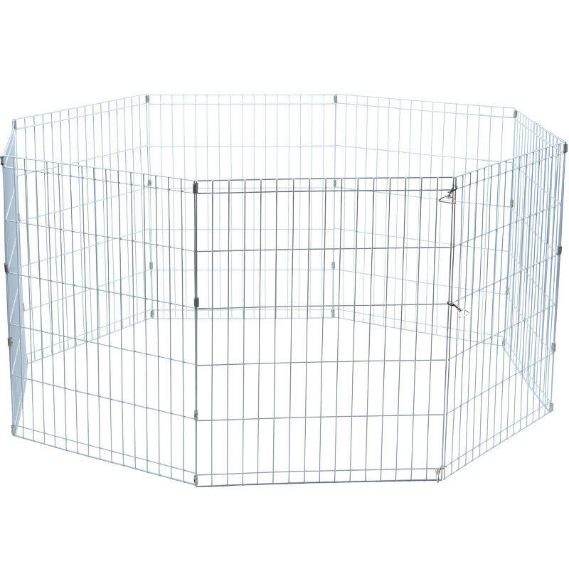 Вольер эмалированный для животных. Размер между прутьями 37,9мм. В комплекте 8 секций. Секции соединены между собой при помощи металлических скоб. Предназначен для кошек, собак, кроликов и других животных. Размер одной секции: 610*760мм.